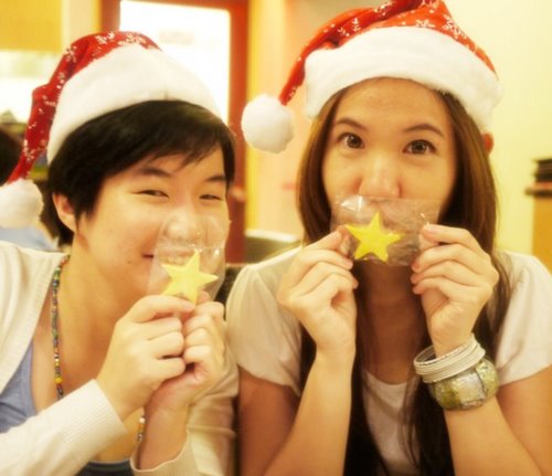 Did a lot of picture taking while waiting for our food to arrive, which only came about 20-25 minutes after ordering. Which was a darn long wait I must say, since my tummy was already growling from not eating for more then 8 hours. I love this pic of me and my friends adjusting our Christmas hats. We were trying to make it stand. Utterly candid. Unfortunately, the cameraman had shaky hands.